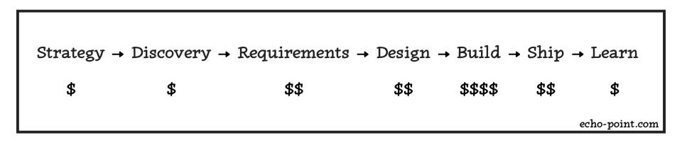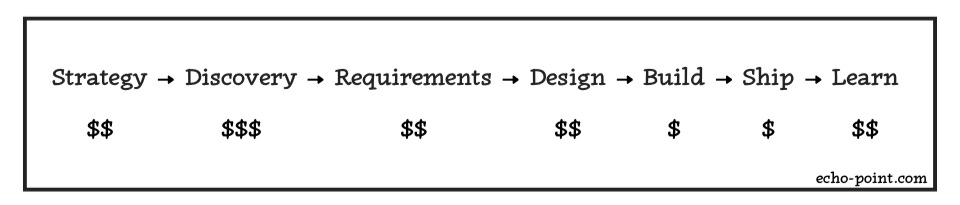 Strategy → Discovery → Requirements → Design → Build → Ship → Learn → Strategy